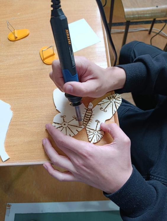 • Stolarz – zdobienie deski w kształcie motyla,